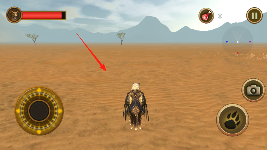 1、点击进入场景,操控飞鹰,在沙漠飞行,探索区域,应对遭遇的挑战。