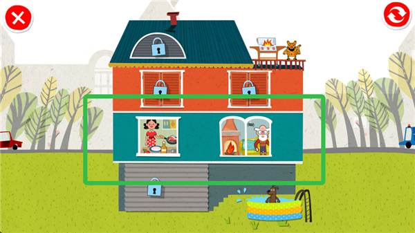 1、卡通童趣画风:采用卡通清晰的画风,打造色彩鲜艳、造型可爱的娃娃屋场景,从厨房到卧室的物品设计都充满童趣,吸引孩子注意力。