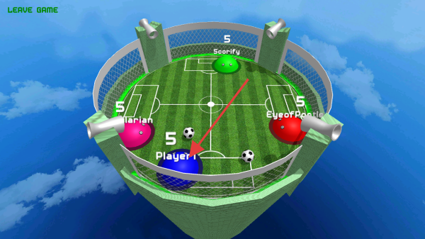 1、进入圆形球场,观察己方球(蓝色球)与对手的球初始位置,留意场边足球分布,规划抢球路径,抢占开局优势。