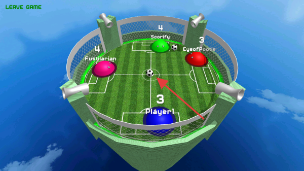 2、比赛中紧盯足球轨迹,操控己方球灵活移动,借助球场边界弹射调整方向,争抢落球权,尝试突破对手防线攻向球门。
