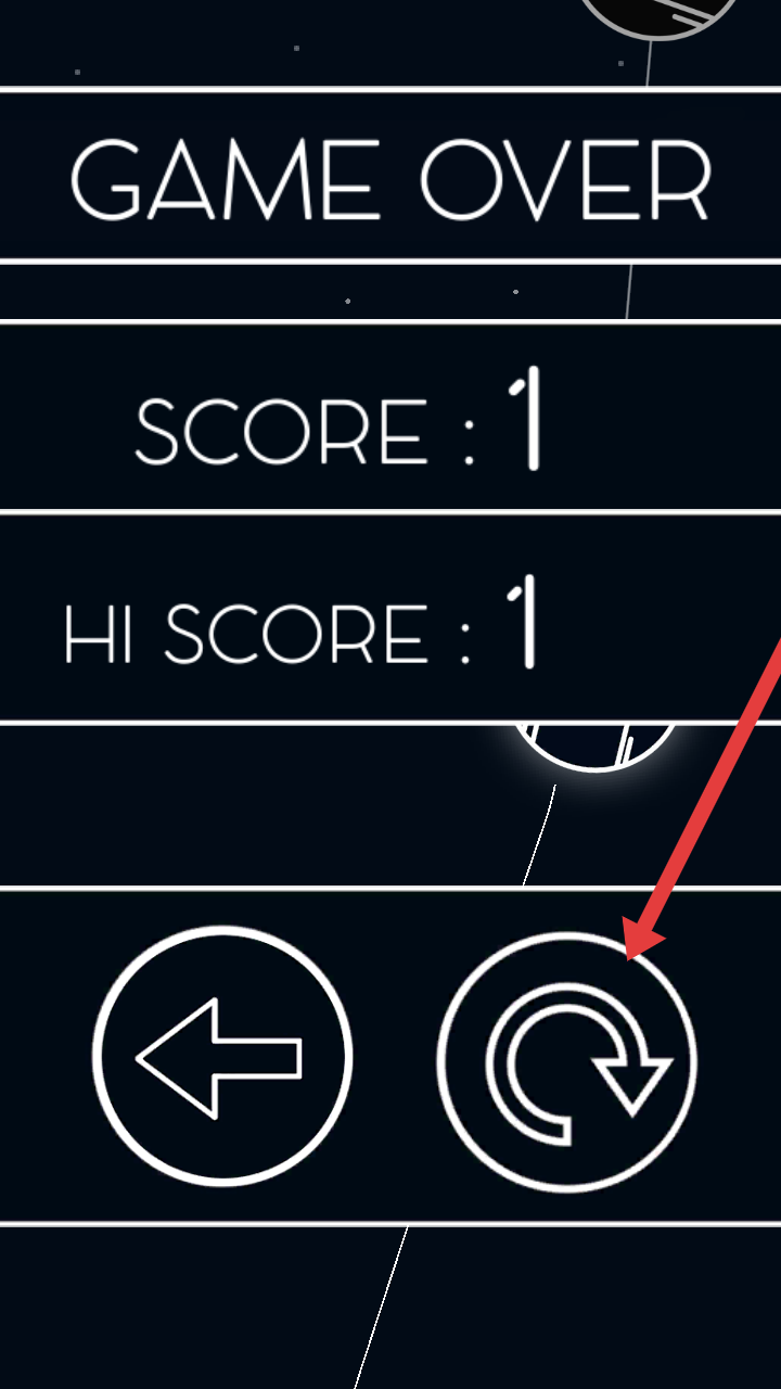 2、当碰到其他球体游戏结束后,点击右侧循环箭头按钮,重新开始挑战,尝试突破更高分数。