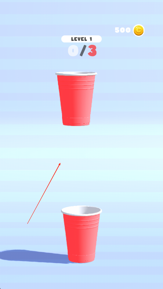 1、进入游戏后在主界面选择关卡,点击开始按钮后首个纸杯会悬浮于地面上方,可滑动屏幕调整视角观察纸杯状态。