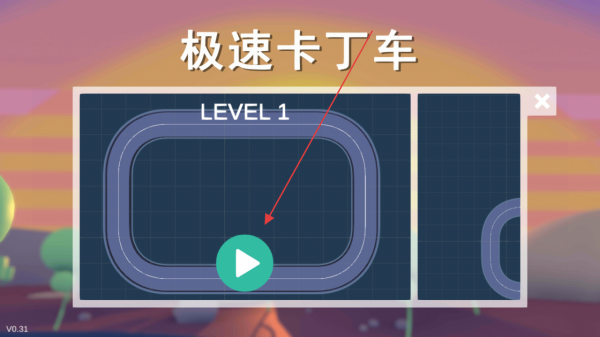 2、在关卡选择界面,点击“LEVEL1”的播放按钮,进入赛道,开启竞速挑战,为后续进程奠基。