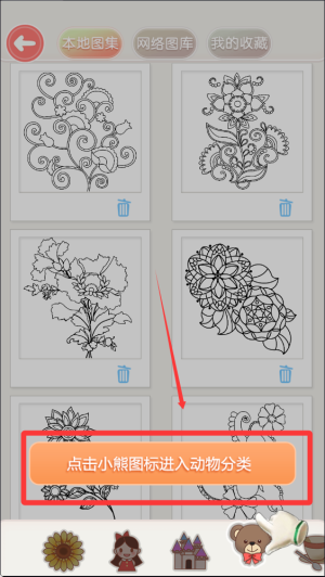 2、通过点击画笔工具,根据线条走向进行涂色,玩家可以自由发挥创意,为黑白线稿注入生命和色彩。