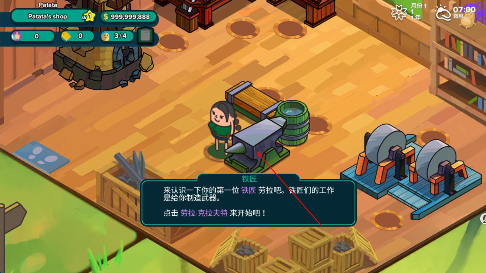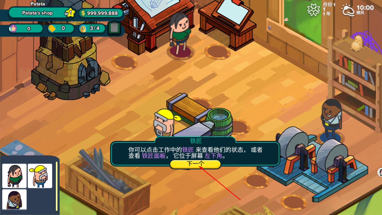 1、初入游戏,你作为土豆世界的武器店老板,继承祖上传下的店铺,从招募寥寥数位铁匠起步,开启打造武器的征程。
