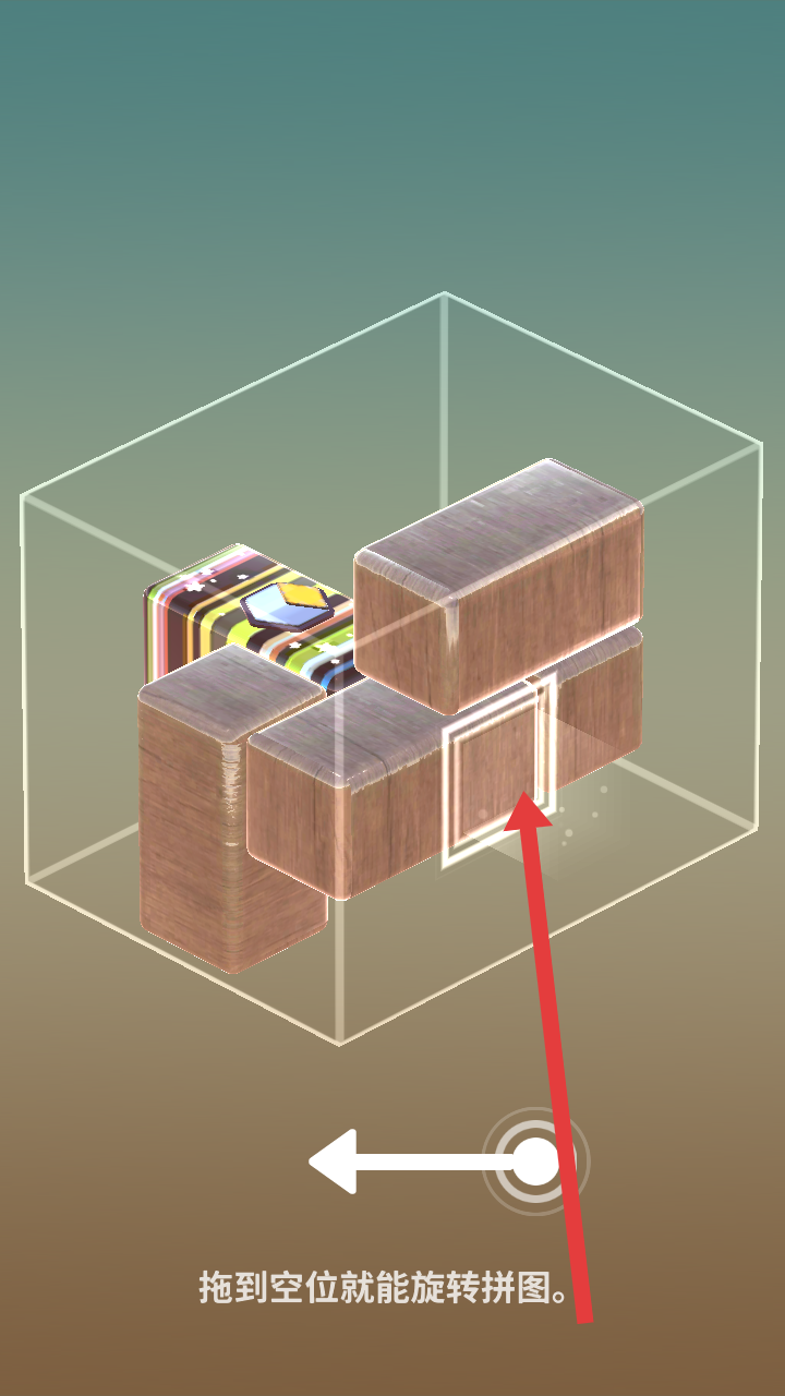 3、若木块取出困难,需要拖动木块到空位旋转拼图布局,调整位置以便顺利取出核心积木。