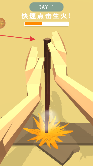 3、按照提示【快速点击】屏幕,完成生火操作维持生存。