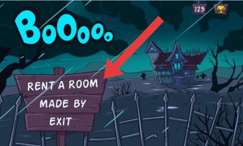 1、进入小鬼阿布的游戏场景,点击木牌上的【RENT A ROOM】选项,开启幽灵主题的冒险关卡。
