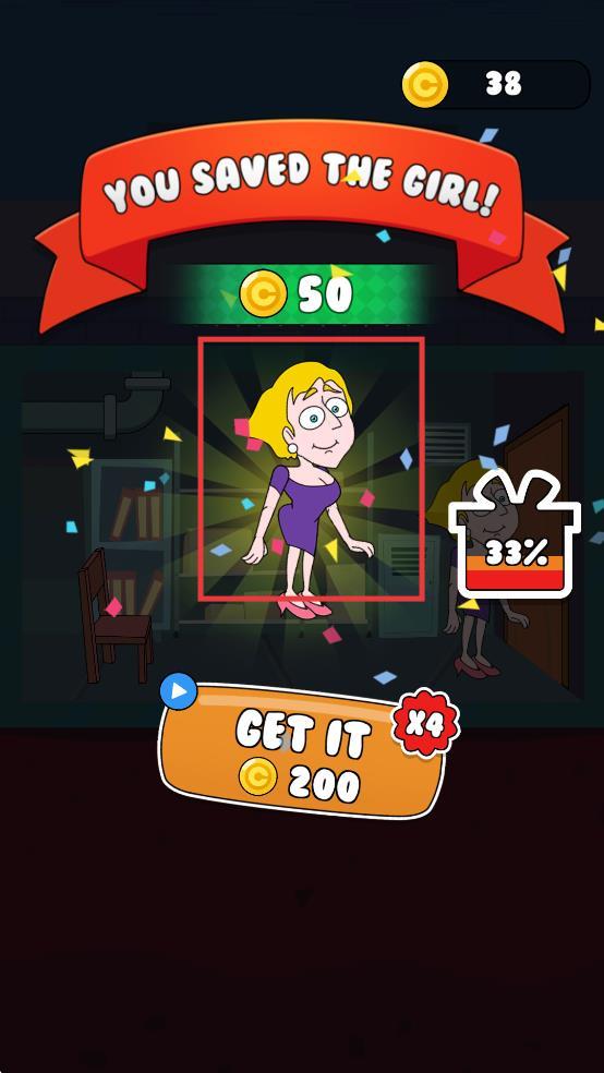 3、成功解救小女孩时,屏幕播放魔性庆祝动画,玩家收获关卡奖励,解锁下一关奇葩剧情与全新挑战。