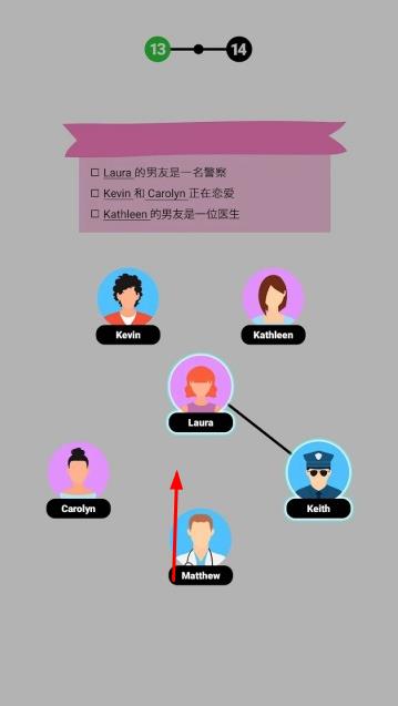 2、游戏中途,随着关卡推进,面对愈发复杂的人物关系,不断收集新线索,结合已放置人物,调整和完善家族树的架构。