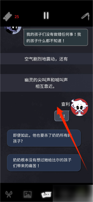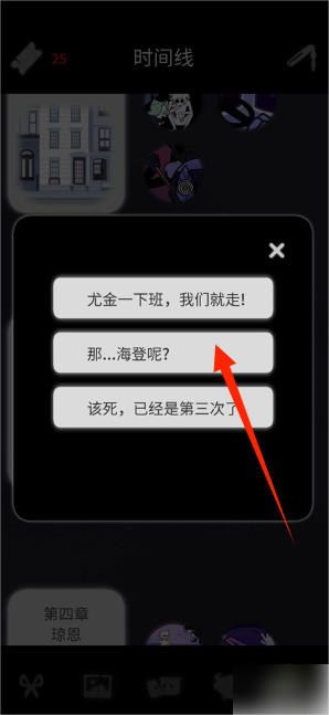 1、在时间线界面,选择对话选项,推进剧情,触发不同故事分支。