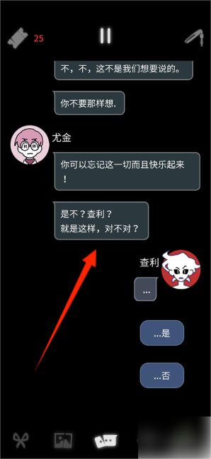 2、面对角色对话,选回应内容,影响角色关系,解锁后续情节。