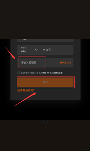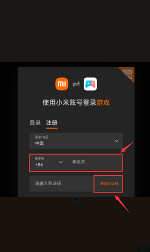 3、然后将收到的验证码填写,点击注册即可登录游玩。