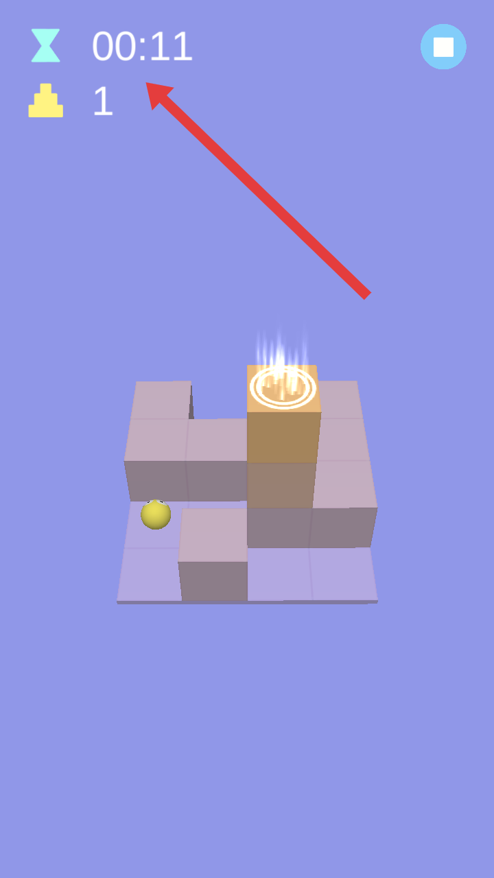 2、进入关卡,关注左上角【00:11】计时,操控黄色小球逐格移动,向发光终点推进,规划行进节奏。