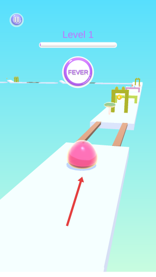 1、开局操作:进入游戏,按“SLIDE UP&DOWN”提示,滑动控制粉色软胶球在轨道移动。