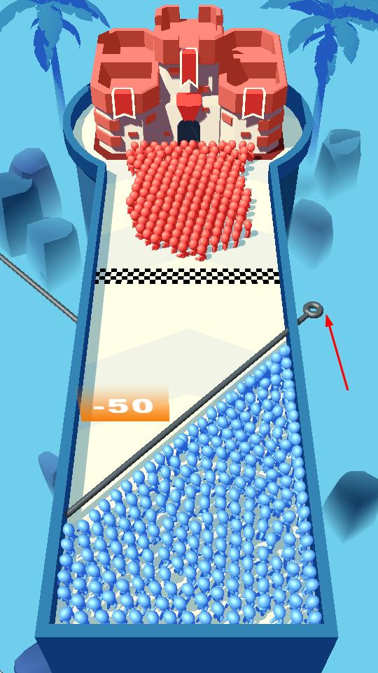 1、通过拔插销,分割蓝色人群,调整行进路线,让部分人群通过增益区,强化兵力。