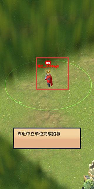 1、下载安装完成之后进入游戏,拖动屏幕,使得玩家控制己方国王靠近中立单位来完成招募。