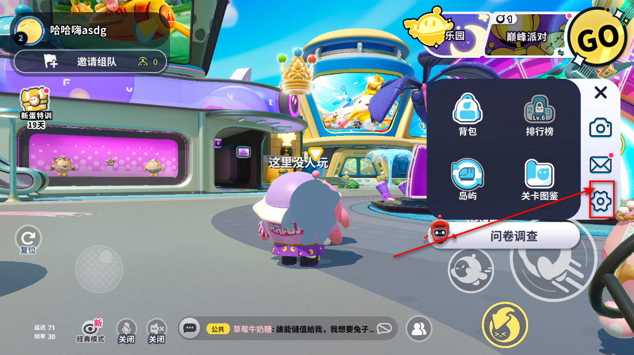 1、乐园场景探索:漫步色彩绚烂的乐园地图,和其他蛋仔在音乐舞台、彩虹跑道互动,触发随机惊喜事件,解锁隐藏区域。
