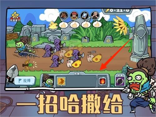 1、进入对战场景,布置僵尸阵容,释放技能,对抗敌方植物,推进关卡。