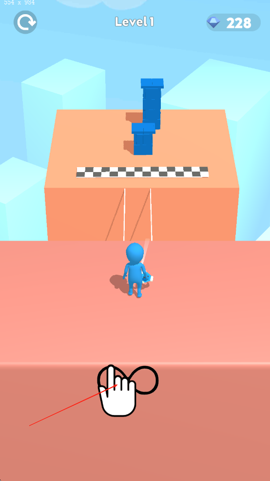 1、进入游戏后选择关卡场景,滑动屏幕调整钩子发射角度,长按屏幕蓄力控制发射力度,松开手指向障碍物发射钩子。