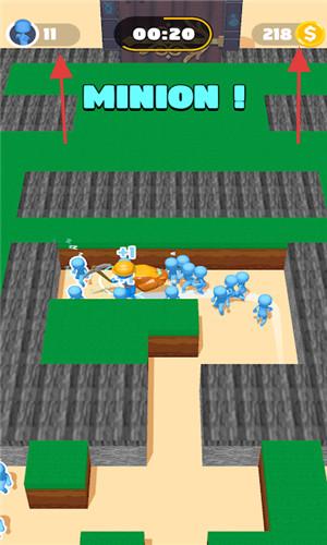 1、在地图中,靠近蓝色小人,将其纳入队伍,壮大己方人数,提升行动效率。