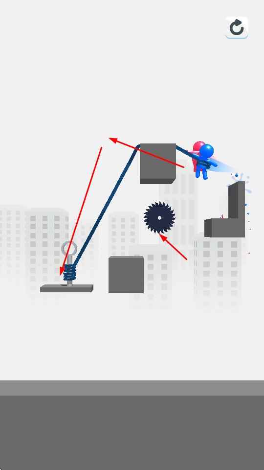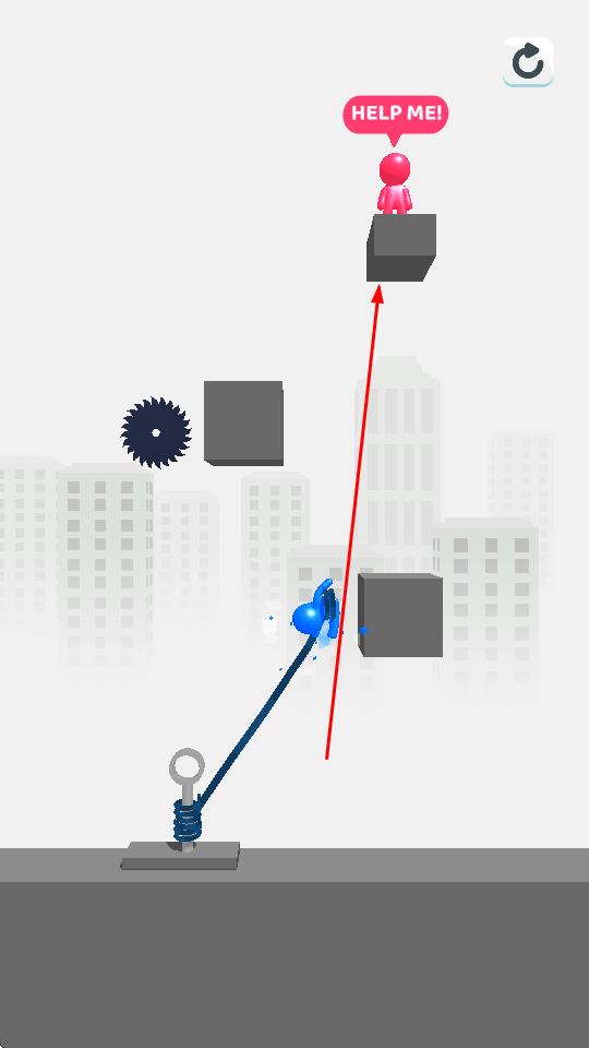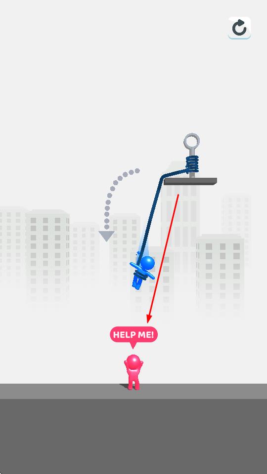 1、拖动蓝色小人,利用绳索的弹性、摆动,规划移动路径,尝试靠近求救目标。