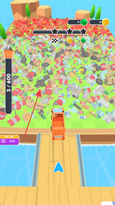 2、驾驶卡车在垃圾场内移动,收集垃圾,填充左侧进度条。