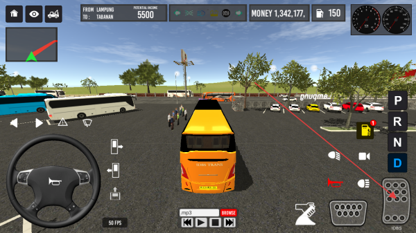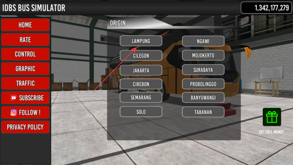 2、在出发地选择界面,选定起点(如LAMPUNG),进入驾驶场景,熟悉方向盘、挡位等操控。