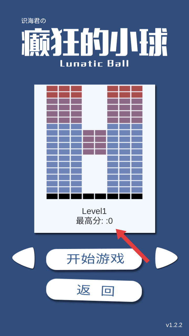 2、在游戏的关卡选择界面,选定显示【Level1最高分:0】的关卡,点击【开始游戏】进入挑战。