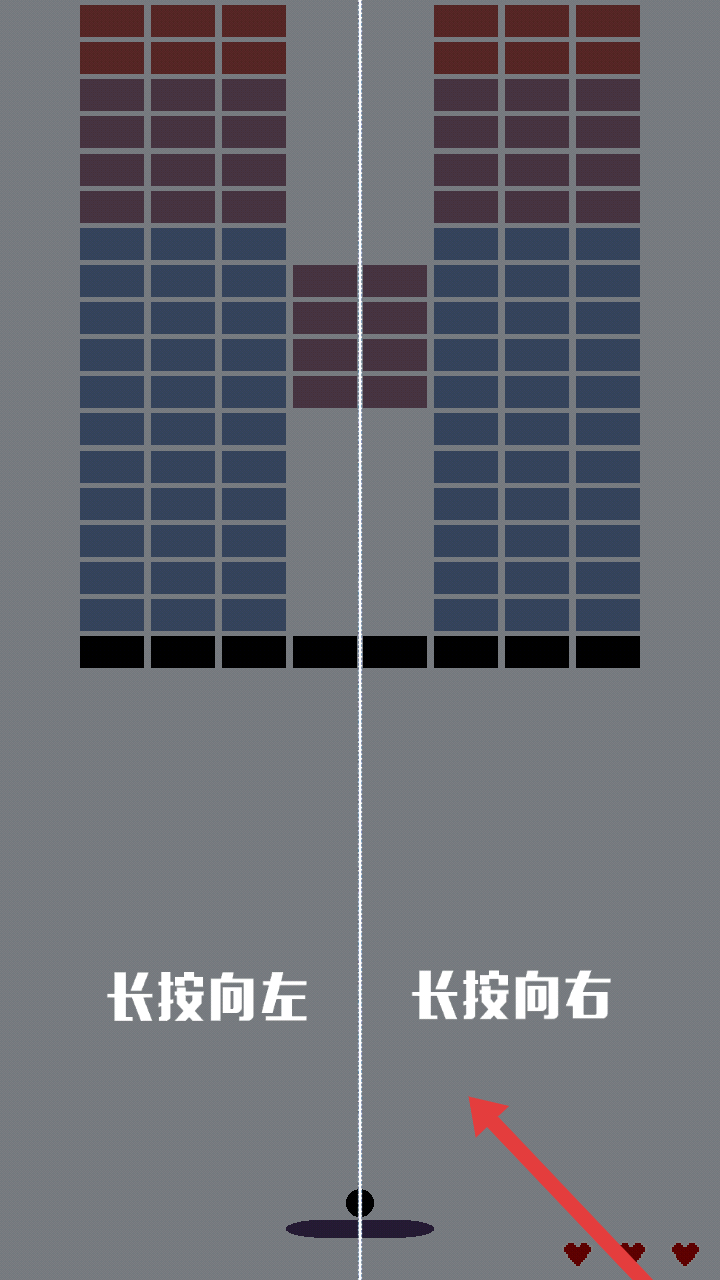 3、进入关卡Level1后,按照提示【长按向左/长按向右】操控小球发射方向,正式开始游戏。