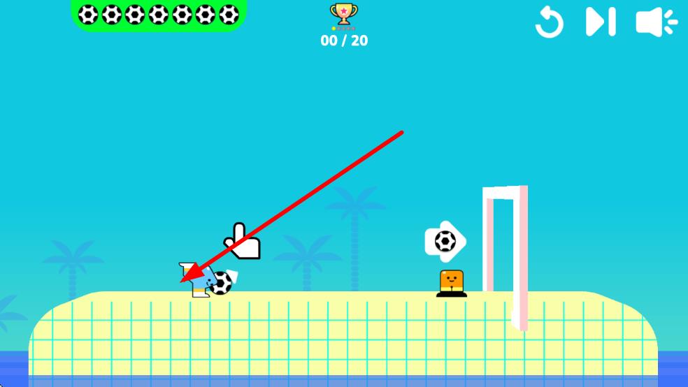 1、进入游戏后在关卡界面选择挑战场景,滑动屏幕调整射门角度,长按屏幕蓄力控制射门力度。