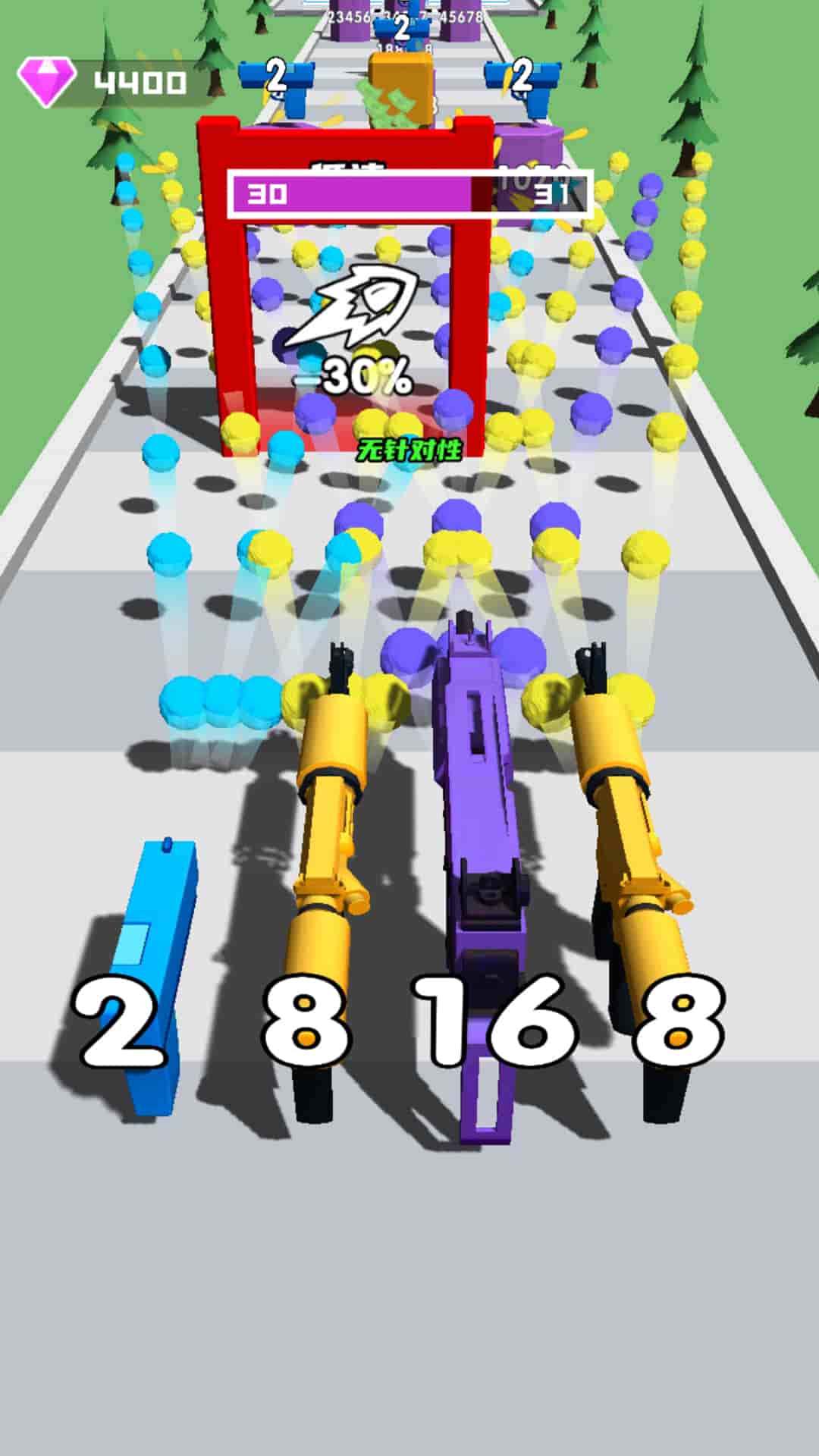 2、不断合成武器可以解锁更高级别的装备,成为游戏中的枪王。