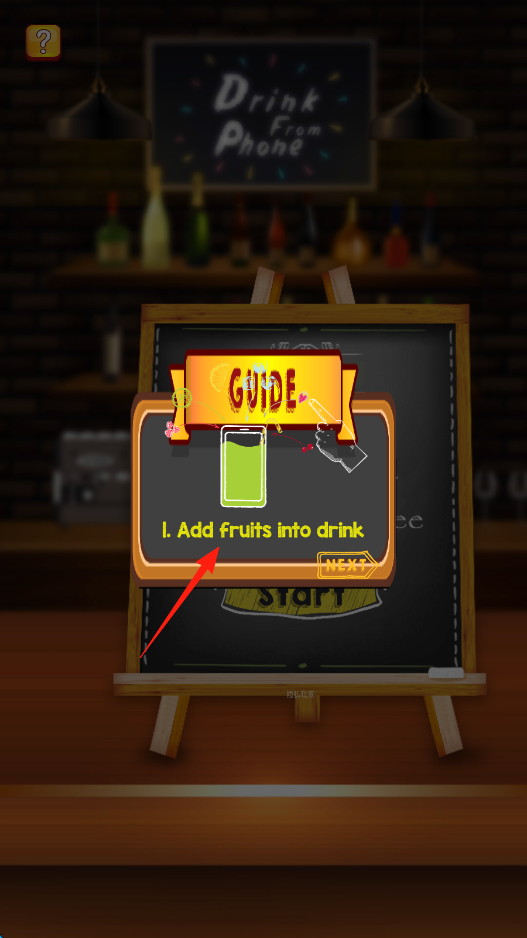 3、摇晃手机,补充饮品,通过晃动,完成制作,体验调酒过程。