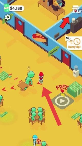2、包含“$4.16K”(资金显示)、“FREE”(免费相关)、人物角色及店铺场景等元素,推测属于经营餐厅/店铺类,呈现顾客、员工互动及店铺运营场景。