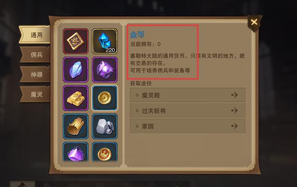 3、金币很重要,后面可以用来升级神器,可以通过魔灵殿、家园、过关斩将等玩法活动。