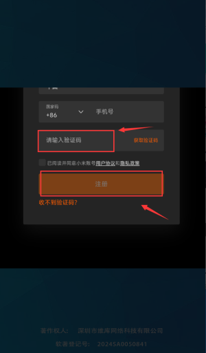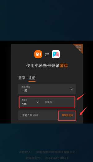 3、将收到的验证码填写,然后点击注册即可游玩。