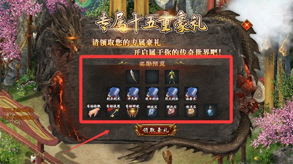 2、然后领取你的专属十五重好礼,开启属于你的传奇世界。