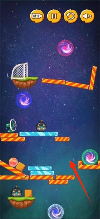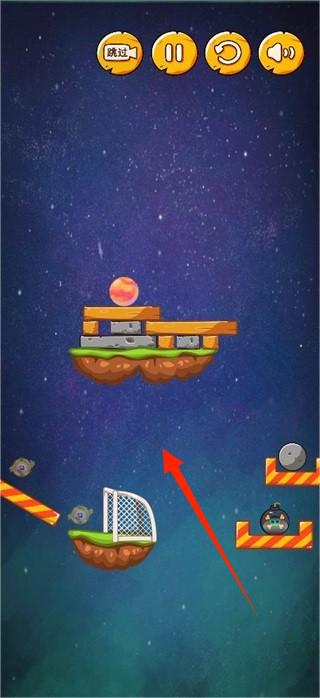 3、尝试不同操作,让小球在星际场景移动,突破复杂关卡,获取胜利。