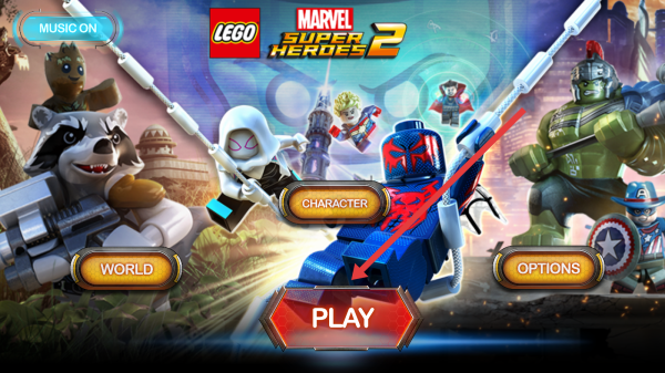 1、在【LEGO-Marvel-Super-Heroes-2】启动页,点击【PLAY】按钮,进入游戏,操控乐高漫威角色开启冒险。