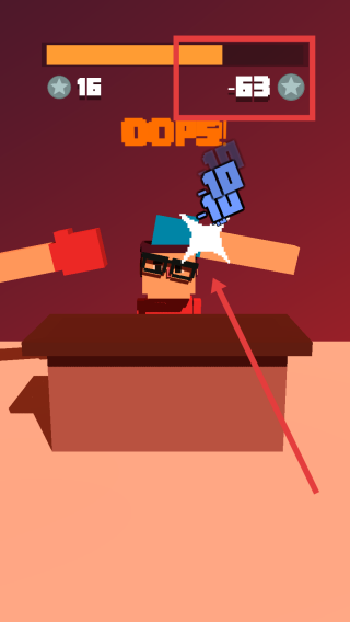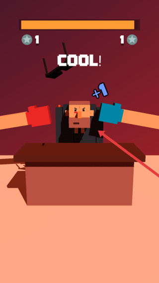 2、战斗时,点击箭头指向的老板身体部位,用红蓝手套攻击,触发“COOL!”等反馈,积累伤害值。