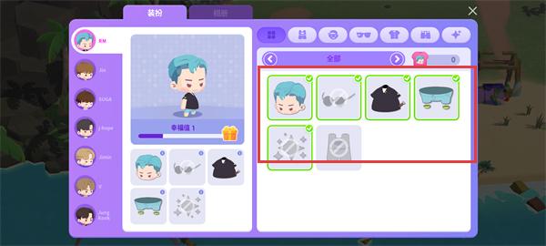 2、岛屿经营策略:利用资源升级岛屿设施,解锁钓鱼场、排球场等互动区域,合理规划布局提升装饰评分,打造专属BTS主题荒岛。