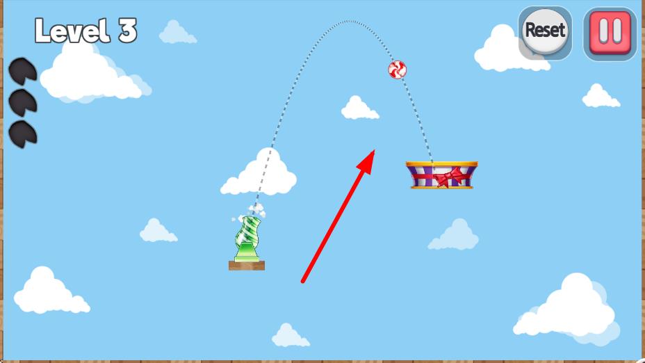 1、先熟悉界面操作,观察炮台固定位置,通过上下旋转调整发射角度,点击屏幕尝试首次糖果发射,感受物理弹射的手感。