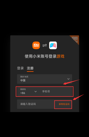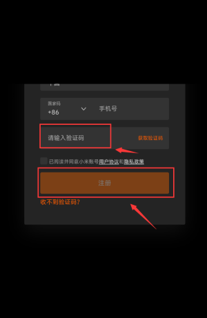 3、将收到的验证码填写,然后点击注册即可游玩。