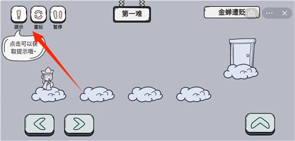 2、在初始场景,点击获取提示,操作按钮,移动角色,到达门处,通过关卡。