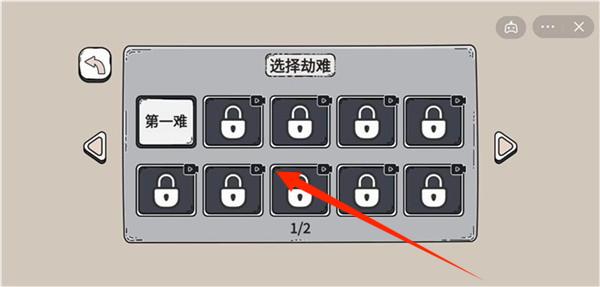 3、进入选择界面,点击解锁的劫难,开始挑战,运用策略,完成冒险。