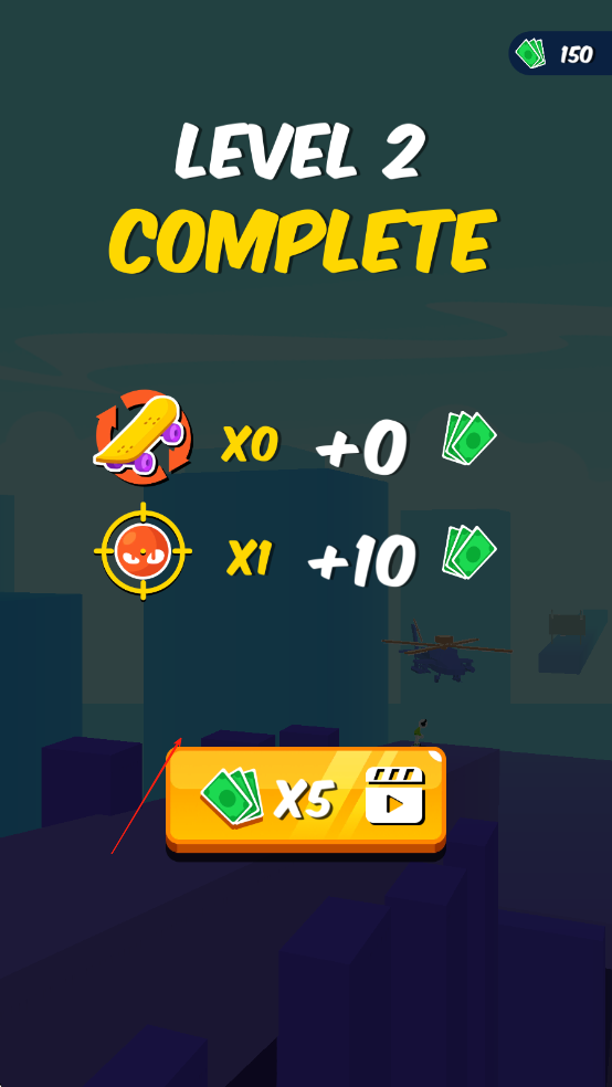 3、成功击败关卡内所有敌人并抵达终点即可通关,结算时根据滑板特技评分与射击命中率获得金币,解锁“火箭滑板”等进阶装备。