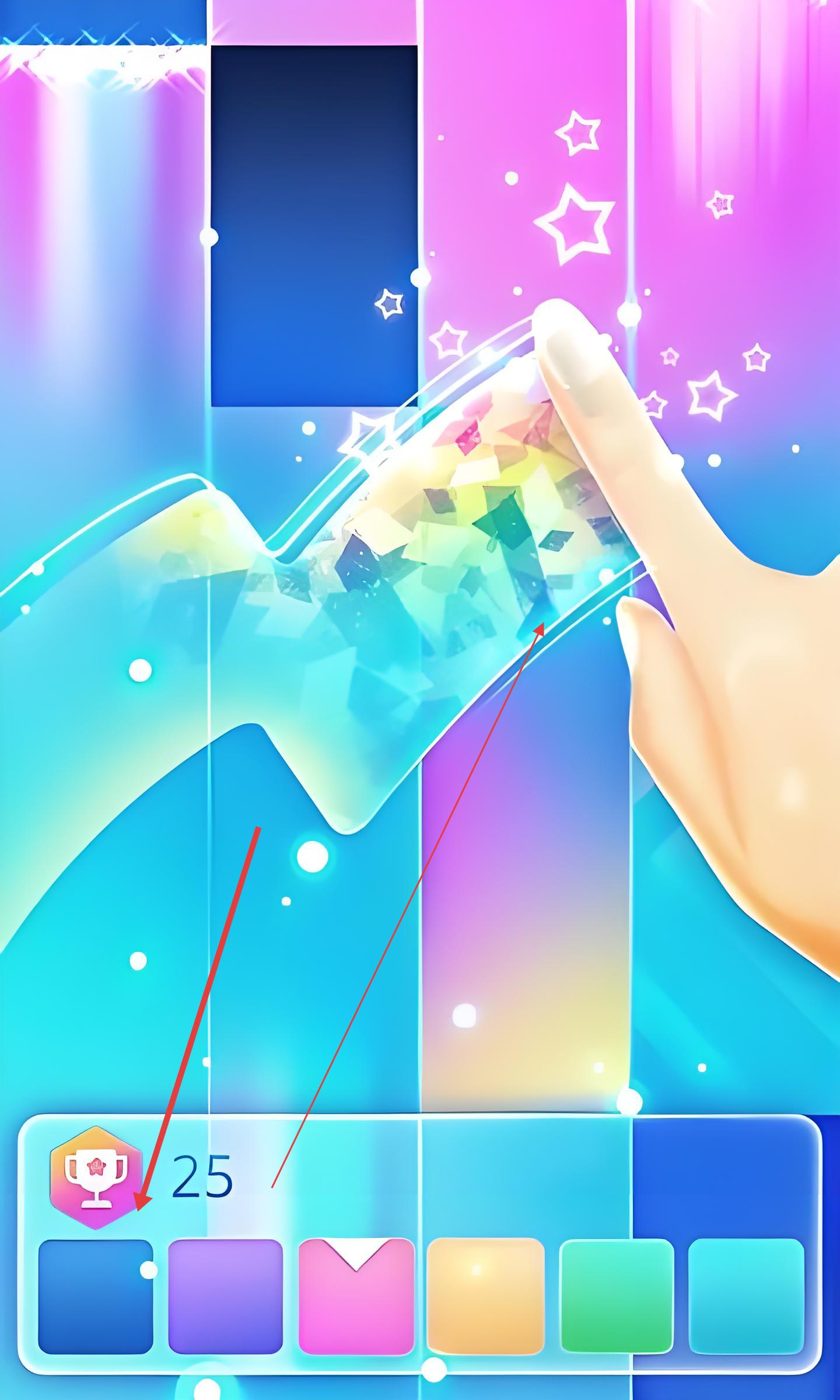 1、沉浸式音乐场景:采用实时光影渲染技术,打造出“深海琴键”“樱花琴房”等六大主题场景,方块点击时会溅起与场景元素呼应的特效,如深海场景中的气泡炸裂。