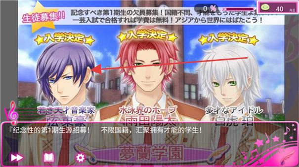 2、在梦兰学园,选择可攻略角色(如东豪),通过对话、互动积攒积分,提升好感度。