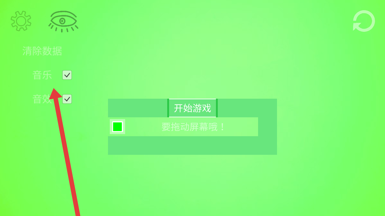 2、点击左上角齿轮图标,在设置界面勾选或取消【音乐】【音效】选项,自定义游戏音频体验。