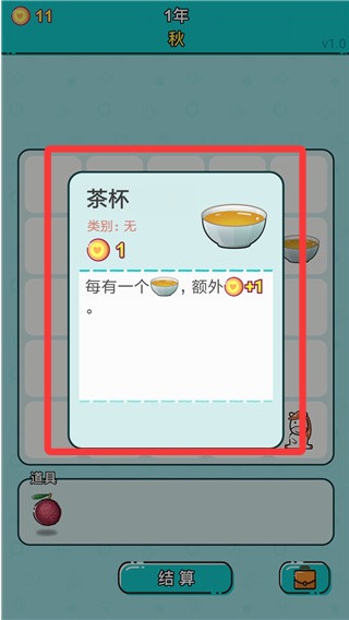 1、茶杯,每次出现一个茶杯,即可增加一个金币。